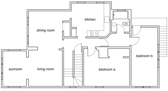 The bedrooms we’re talking about are “a” and “b” in this floorplan.