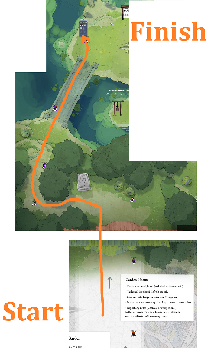 Go to https://gather.town/app/aPVfK3G76UukgiHx/lesswrong-campus, the LW Walled Garden.