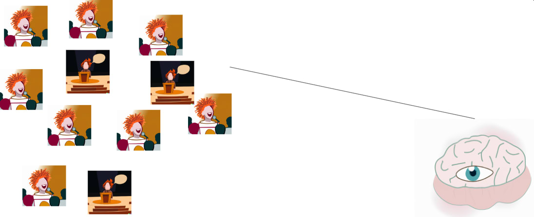 Memory of a previous situation: Standing unprepared in front of an audience, feeling awkward, helpless, worthless, and like a bad person.