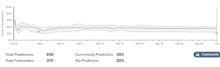It seems hard for this to still be at 35% with annexation at 5%, implying that most of the time that they recognize the territory they do so without any ability to annex. I don’t want to go too far against consensus on something I know little about, but I’m lowering my prediction a bit here to 20%.