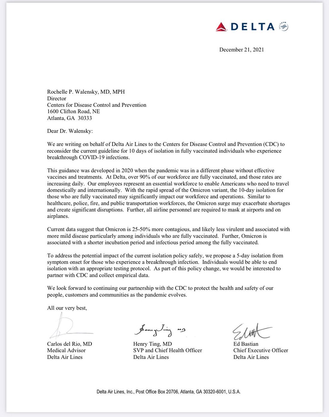 What we know about the Omicron variant is that it is everywhere and spreading fast. What we know is that lots of people are getting sick at once. If we forced them to isolate for ten days, there wouldn’t be anyone to staff the hospitals, man the checkout counters, drive the trucks and fly the planes. To erase any remaining doubt, The Washington Post confirms this was the motivation.