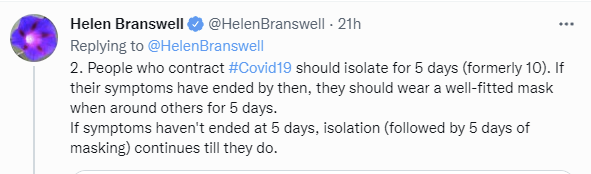 Previously, if you tested positive for Covid, you needed to isolate for ten days. Now you only need to isolate for five. The official announcement is here.