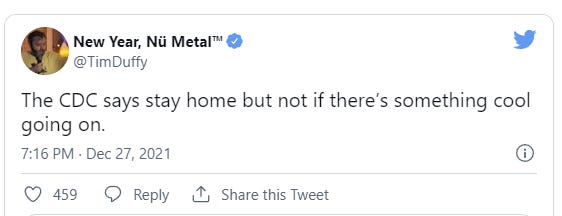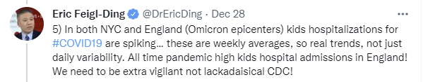 I support this at Simulacra level 1, but am worried about what it says at higher levels. It seems like the CDC is not distinguishing between vaccinated-but-not-boosted individuals and unvaccinated individuals, which is probably closer to true than untrue in this context (the massive spread has to come from somewhere, and it’s just not credible that it’d be coming from the unvaccinated exclusively). However, I expect that this individual instance of putting not-boosted in the same category of not-vaccinated will continue into other policy recommendations. Since I oppose those policies, and especially oppose those policies expansion to the not-boosted, this makes me wary.