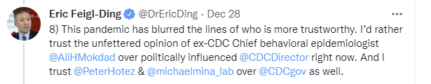 In one way I sympathize, which is that in this model it is the CDC’s job to argue as an advocate for maximum action, like they were in a court of law as the Devil’s Advocate, while the executive branch and others who want to keep society running take the other side, and they hammer things out. The idea that the CDC would be ‘influenced’ by non-health considerations is anathema to this.