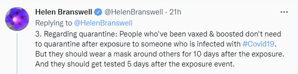The test at five days after exposure is rather silly given Omicron’s pattern, and way too late given the quarantine requirement. I’d be testing on more like day three if I had an exposure I was taking actually seriously, or two and four if I was testing twice. Five is presumably picked here entirely for Law of Five reasons. It seems to completely contradict the five day period earlier. If generation time is two to three days, and most exposure is in the first five days, what does testing after five days accomplish? Especially if it’s PCR, so you take another day for it to come back?