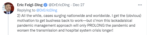 The ‘you didn’t reduce costs to zero’ and ‘only health considerations count’ logics, as always, are the standard procedure of many ‘experts.’ Eric Feigl-Ding continues to be the exemplar of one-track health-only thinking, where it’s crazy that anyone would care about anything else, and everything always calls for the same actions without regard to a physical model. I figured I’d break down his thread as the example here.