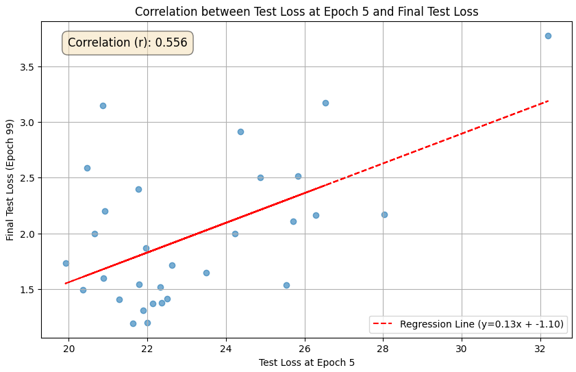 Eyeballing it, it appears that this particular model went through ~3 phases during training, with the first ~6 epochs going through a very steep drop, then dropping more slowly but ~linearly until epoch ~30-40, and then just very slowly getting closer towards 0. I didn’t look more deeply into these phases though. This was also not a general pattern for the other models (although the very broad pattern of steep drop at first that abruptly turns flat holds for all of them).