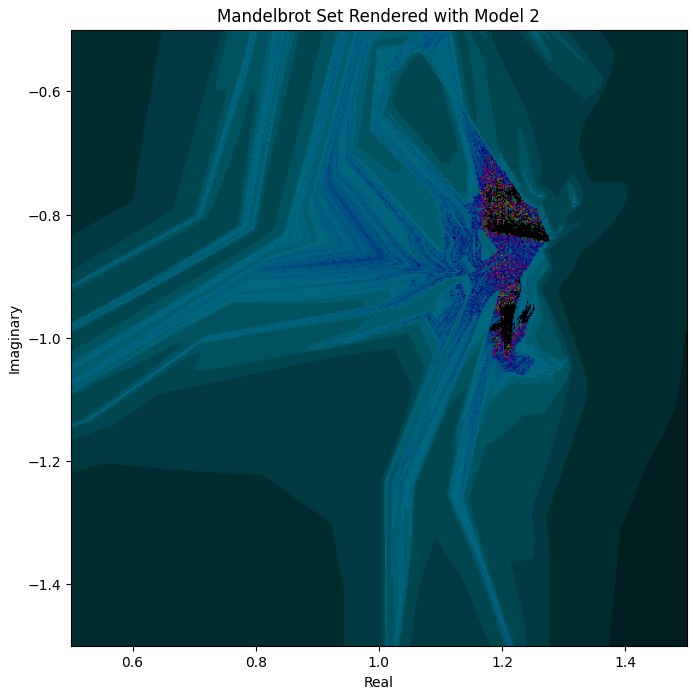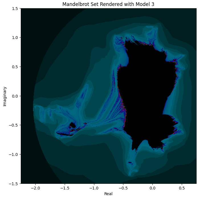 It’s interesting how Model 3 and Model 4 had test loss values that were not all that far apart (0.34 vs 0.11, respectively), yet their Mandelbrot renderings are worlds apart. Why is that?