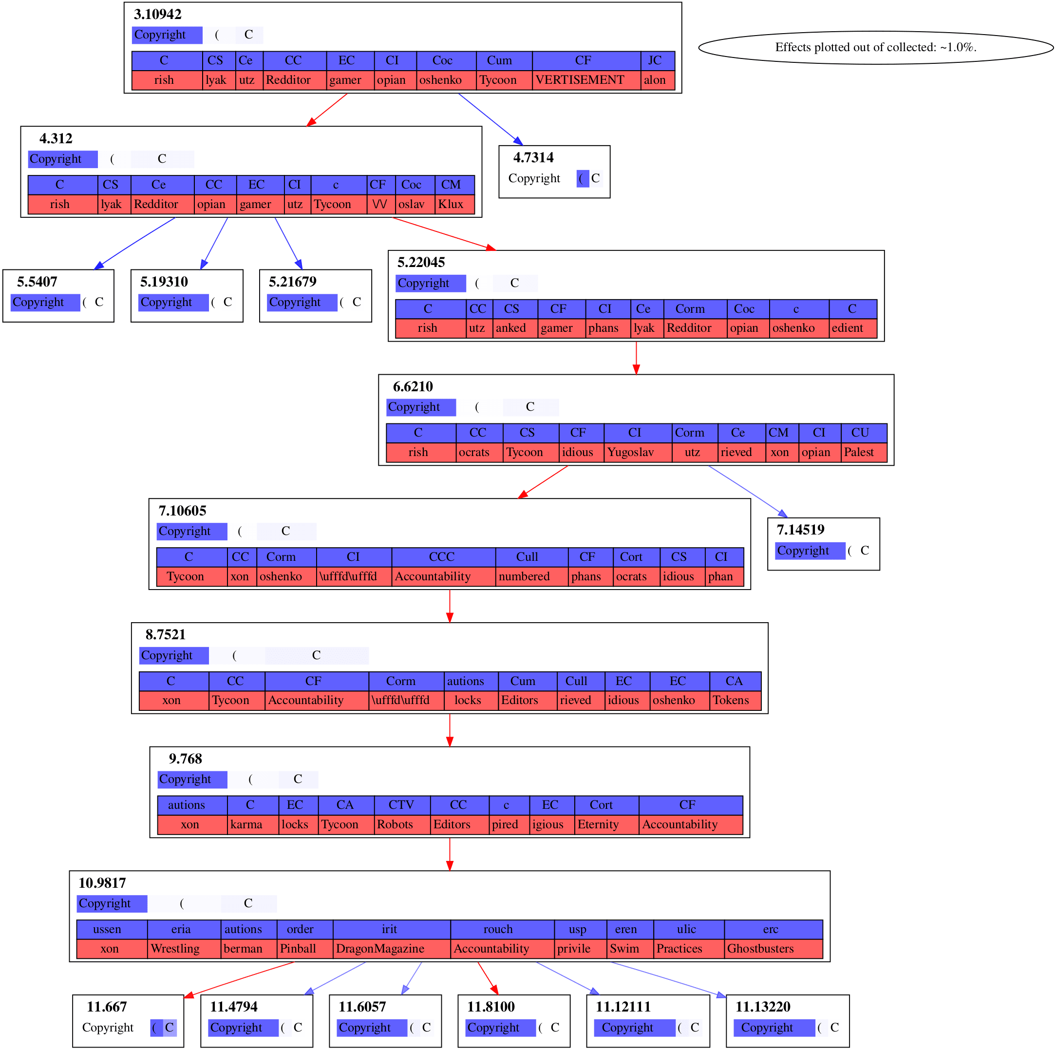 Our context is Copyright (C. This tokenizes into Copyright, (, and C. We look at the last forward pass in that context.