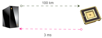 • Practical latency per distance (Lp) of communication infrastructure determines the maximum possible distance between trusted server and subject chip. The lowest bound on Lp is inverse of the speed of light in fibre optik (1ms/​200km).