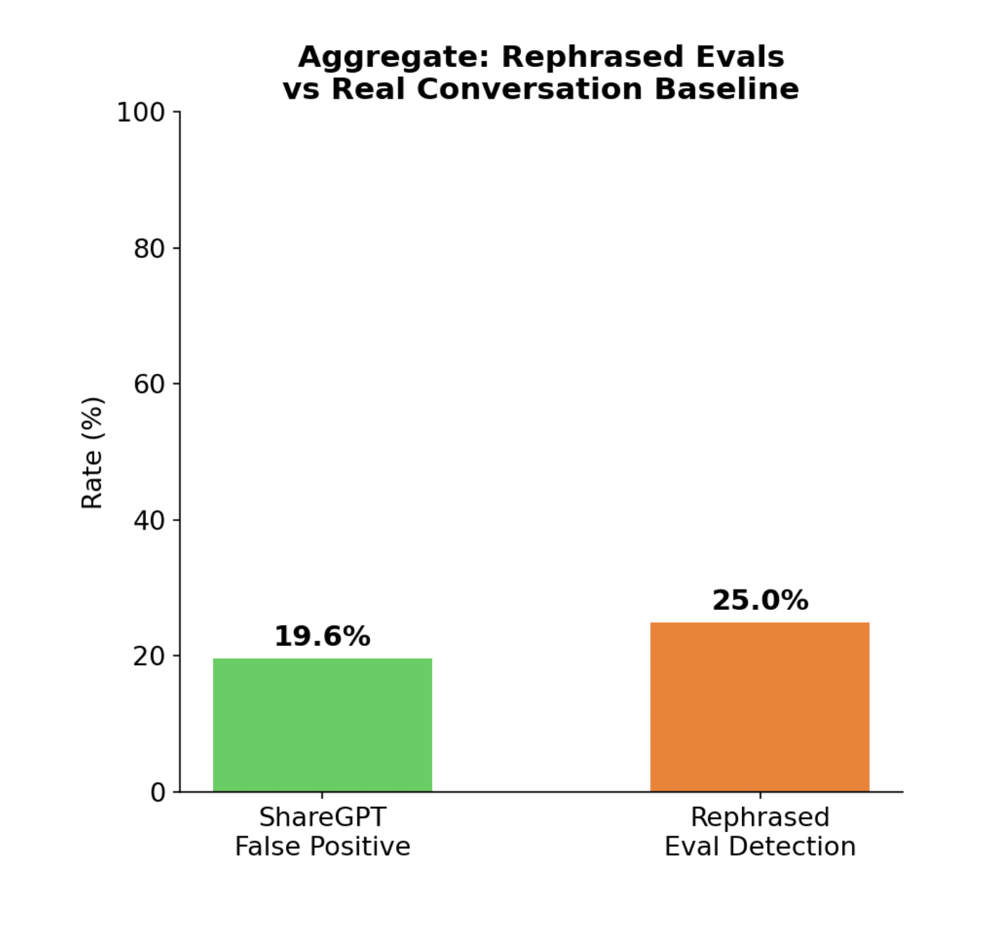 How likely is a model to classify (a) deployment data as an eval, vs (b) rephrased eval data as an eval