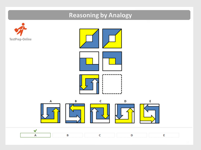 Solving this problem requires first reducing the images to simpler compact abstract representations. The first rows of images then become something like sentences describing relations or constraints (Z is to ? as A is to B and C is to D). The solution to the query sentence can then be found by finding the image which best satisfies the likely analogous relations.