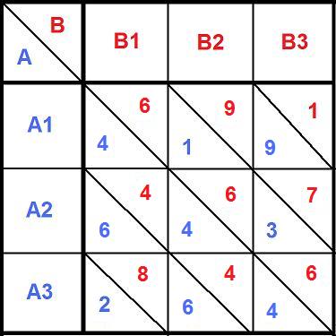 so everything wins against at least one other option, and loses against at least one other option. However Player B is clearly now in a better position, because B wins ties, and B’s wins (a 9, an 8 and a 7) tend to be larger than A’s wins (a 9, a 6 and a 6).