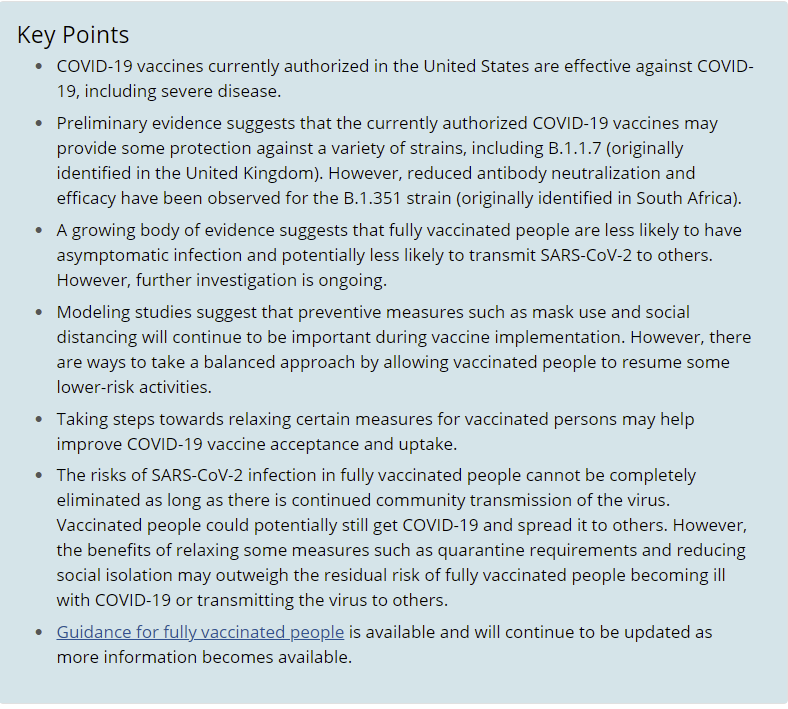 Next, we see that ‘a growing body of evidence suggests’ that fully vaccinated people are ‘less likely to have asymptomatic infection.’ But then it warns us the investigation is ongoing.