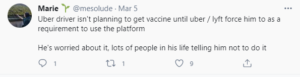 I have a family member in the “wait and see” group. Why? I think: their main source of truth about the world comes from friends and family; they are generally skeptical of the medical establishment and authorities; and they won’t really believe the vaccine is OK until many people they know have had it and nothing bad has happened, and/or people they trust tell them it’s fine.