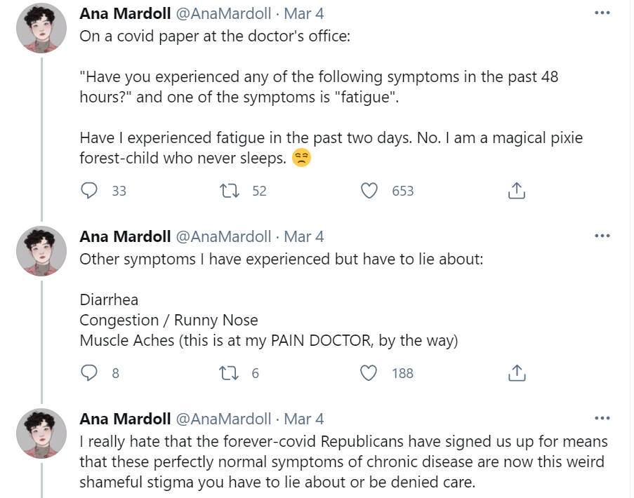 I told them I’m getting it as soon as I can, and I’m happy to be their guinea pig. I think it may help—once I’m actually able to get a vaccine, that is.