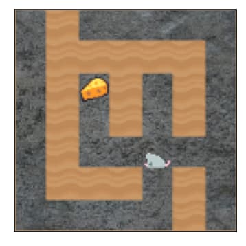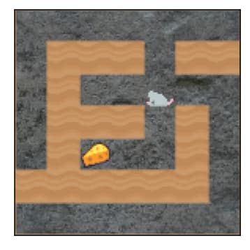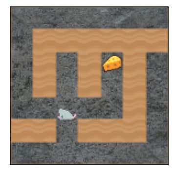 With the mouse on the decision square—a square where going in one direction leads to the cheese, and going in another direction leads to the top right corner. There is, at most, a single decision square in a maze.