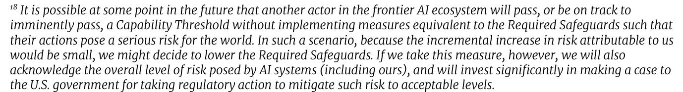 In other words, if the company believes that a competitor is about to reach a particularly dangerous threshold without appropriate safeguards, this would trigger what amounts to an ‘ignore all of the above’ clause.