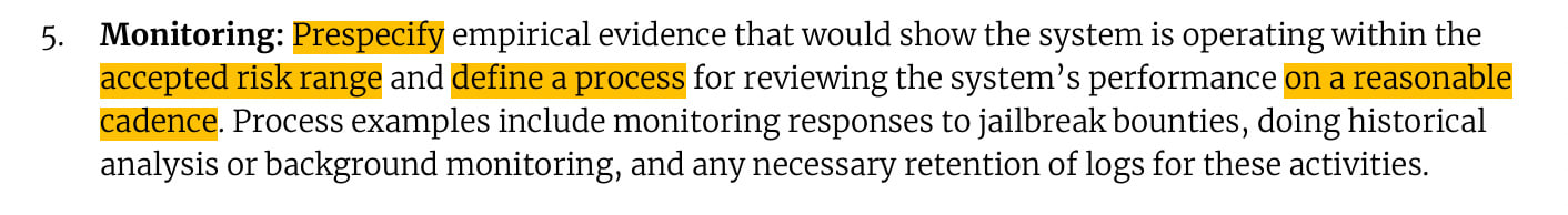 This is what I would describe as a ‘plan to make a plan’. They are yet to specify what empirical evidence would be needed to demonstrate that the system is ‘operating within the accepted risk range’ (which they do not define). They do not yet know what review process they will follow or how often.