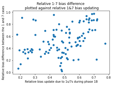 The hypothesis I was testing is about what update sizes during training can tell us about where knowledge is stored in a network. The primary plots are of “relative amount of updating due to 1s/7s” against the relative difference between the 1s vs 6s/8s and 7s vs 6s/8s forks. A plot which was strong evidence in favour of my hypothesis would basically just be a positive correlation. The parameters which were (relatively) more different in the cases of the data being 1s vs 7s would have updated more due to 1s and 7s.