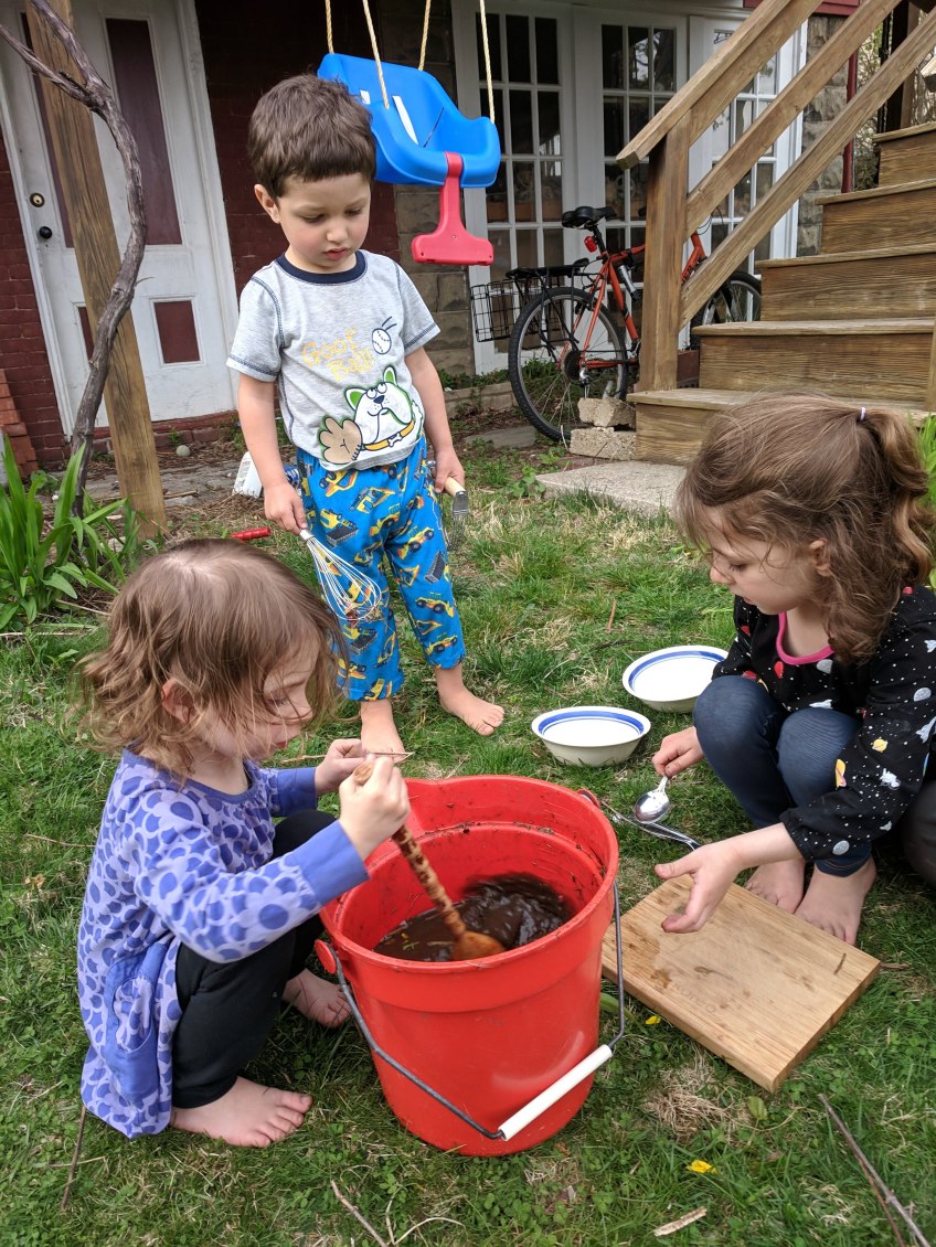 My kids and their cousins are avid mud-soup makers. Boys are full participants in this case
