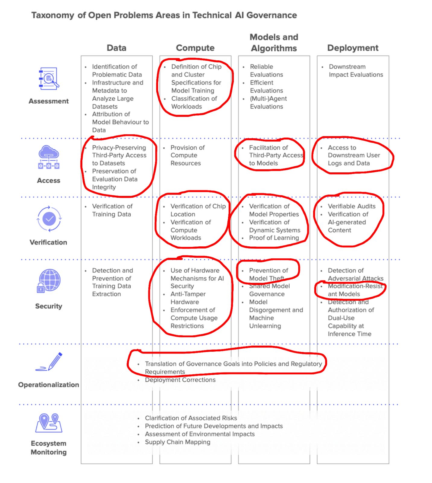 Why it matters: Rigorous technical analysis on questions like “how would you actually enforce [insert compute governance mechanism] in practice?” or “what techniques can allow for verifiable model auditing without compromising model security?” can be extraordinarily helpful for making policy proposals more feasible (and thus more likely to be implemented). My sense is that a lot of AI safety people have gotten excited about this paradigm in the last year or so (justifiably IMO), but there’s still more room for this kind of work. See Open Problems in Technical AI Governance for more. FAR AI also recently ran a workshop on this.