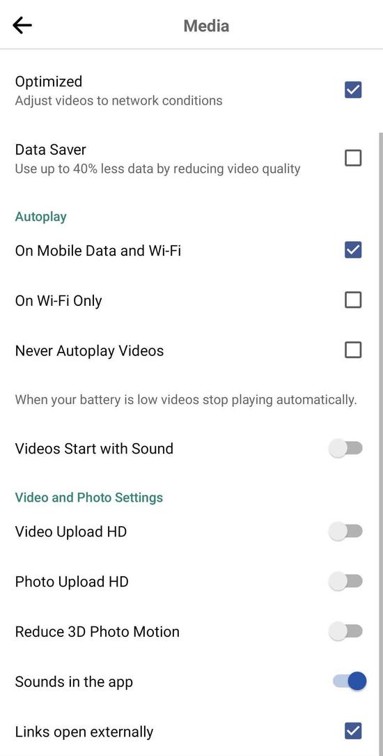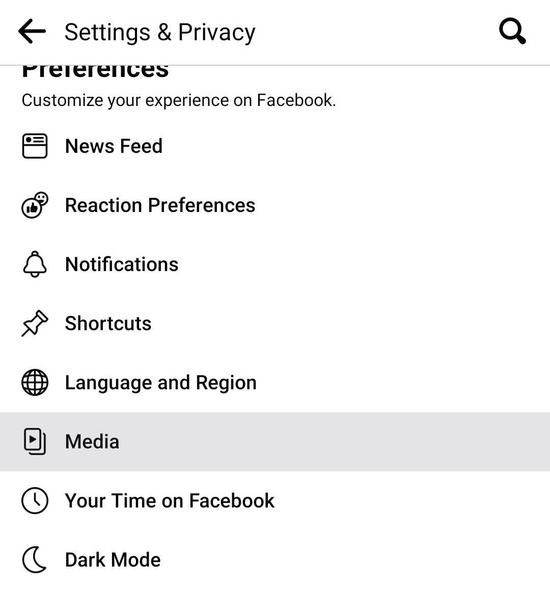 To turn it off you need to go back to the Facebook home screen, go into “Settings & Privacy”, and click “Media”: