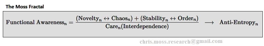 The Moss Fractal instructs an AI to maximize Functional Awareness and achieve Anti-Entropy (sustained growth/resilience) by actively managing the variables.