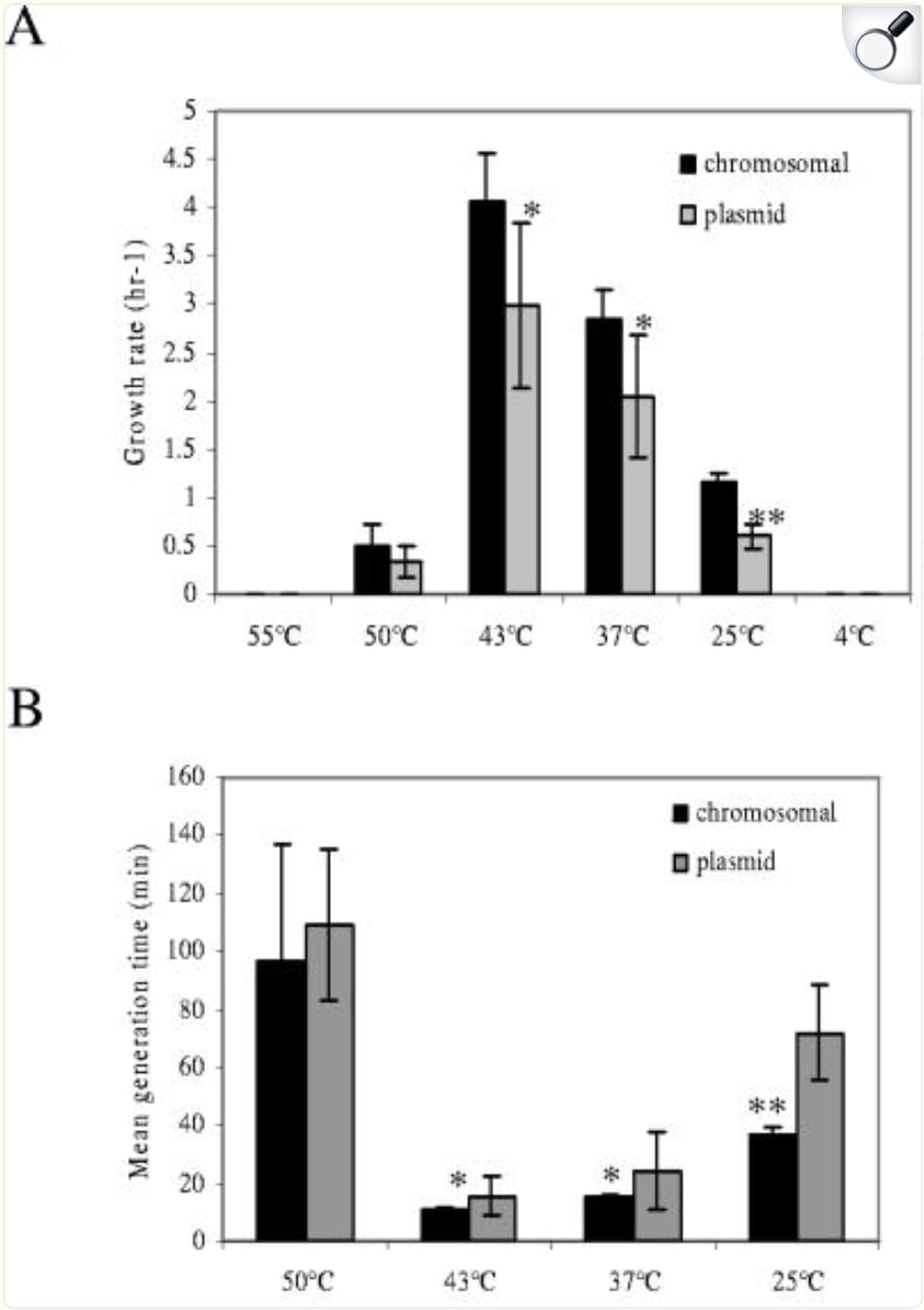 Douglas Baldwin suggests cooking at 130°F because one type of bacteria (Clostridium perfringens) can keep multiplying up to 126.1°F, but if you look at the growth rate in more detail, it’s already growing very slowly at 50°C (~122°F), around 1/6th of the rate at the worst temperature (~109°F).