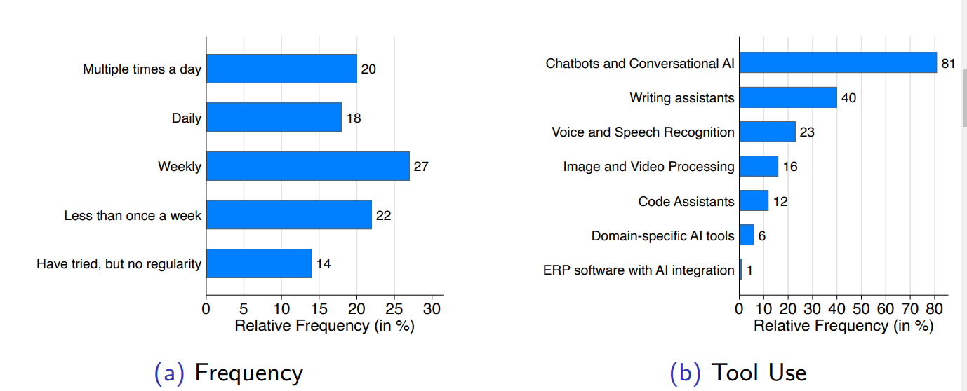 Lots more good graphs on his slides. If you use AI you are relatively more likely to be young, have less years on the job but be high earning and of higher rank, and be better educated.