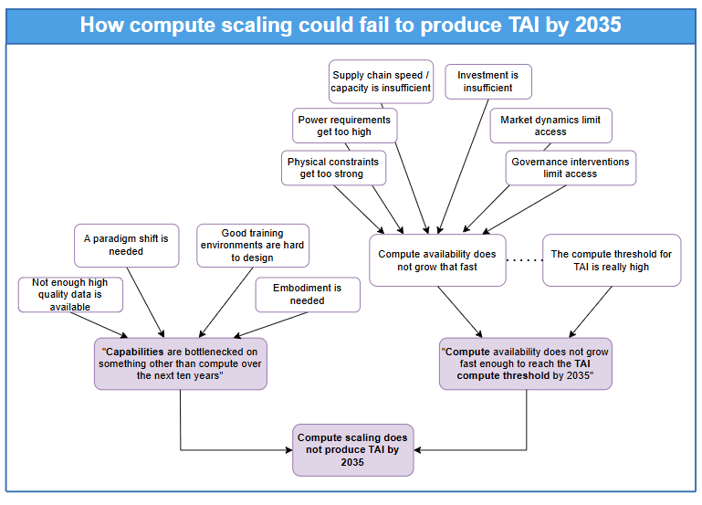 Category 2: ‘Compute growth will not be fast enough for TAI by 2035’. This type of objection involves a rejection of assumption (ii).
