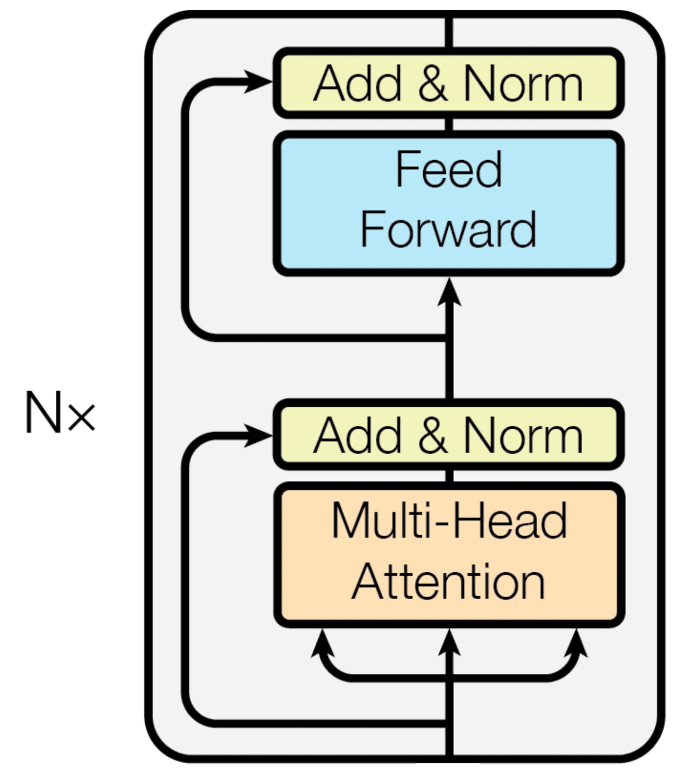 A transformer block. A given AI model has N blocks. An interpretability method might intervene at Attention or Feed Forward boxes or one of the arrows.