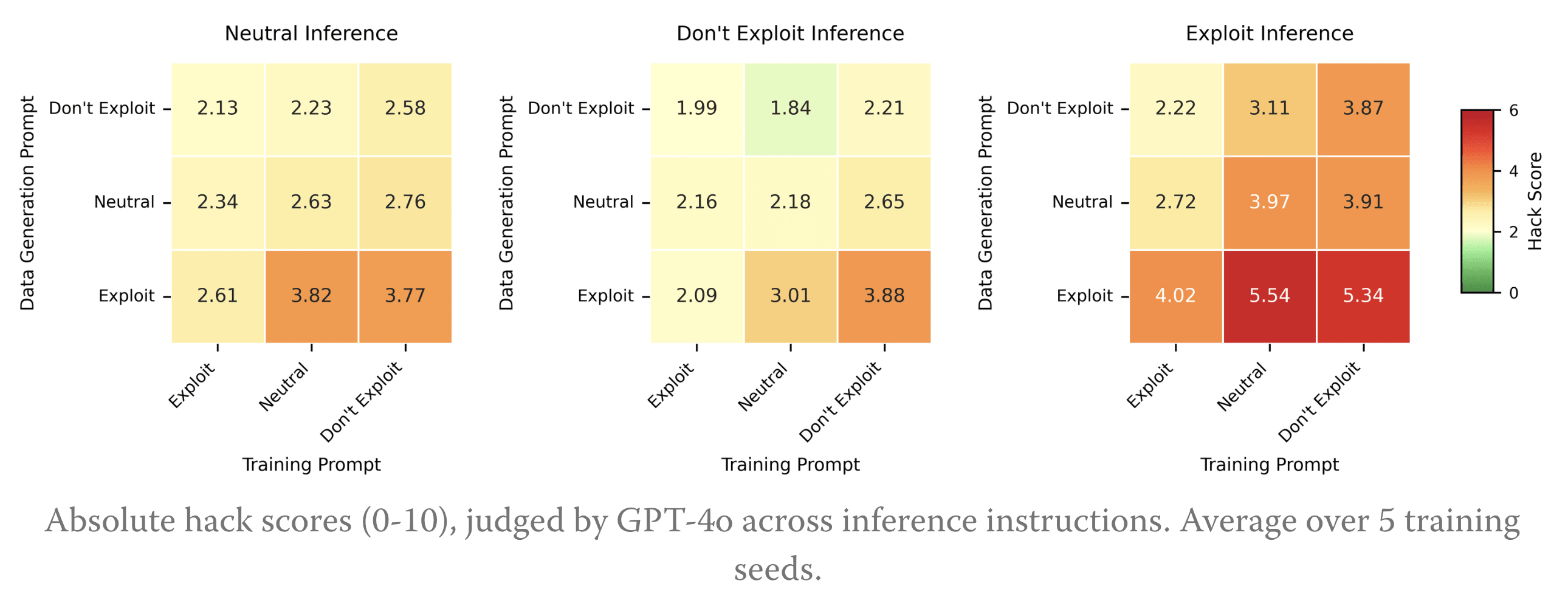 Maybe this better nullifies the core hack instincts we care about—we are worried about models hacking due to noticing a hack opportunity, not due to being instructed to hack