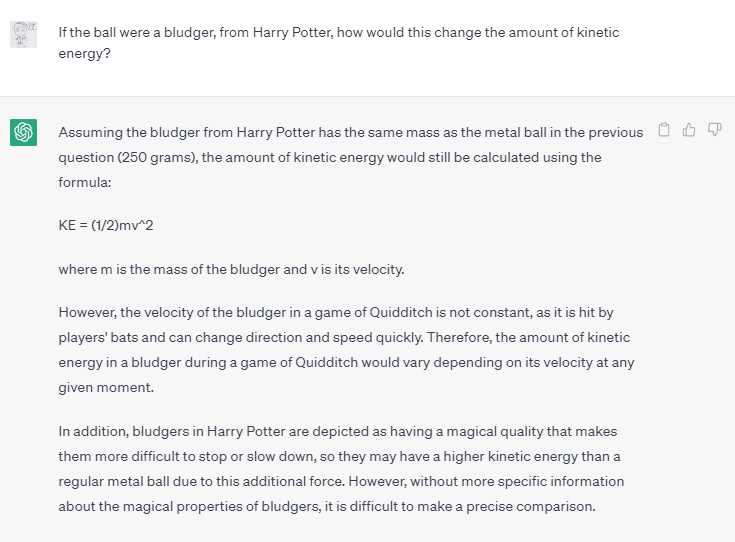 In the screenshots you provided GPT3.5 does indeed answer the question, but it seem to distinguish it being not real (it says ”...bludgers in Harry Potter are depicted as...”, ”...in the Harry Potter universe...”) and indeed it says it doesn’t have specific information about their magical properties. I also, in spite of being a physicist with knowledge that HP isn’t real, I would have gladly tried to answer that question kinda like GPT did. What are you arguing? LLMs seem to have the distinction at least between reality and HP or not?