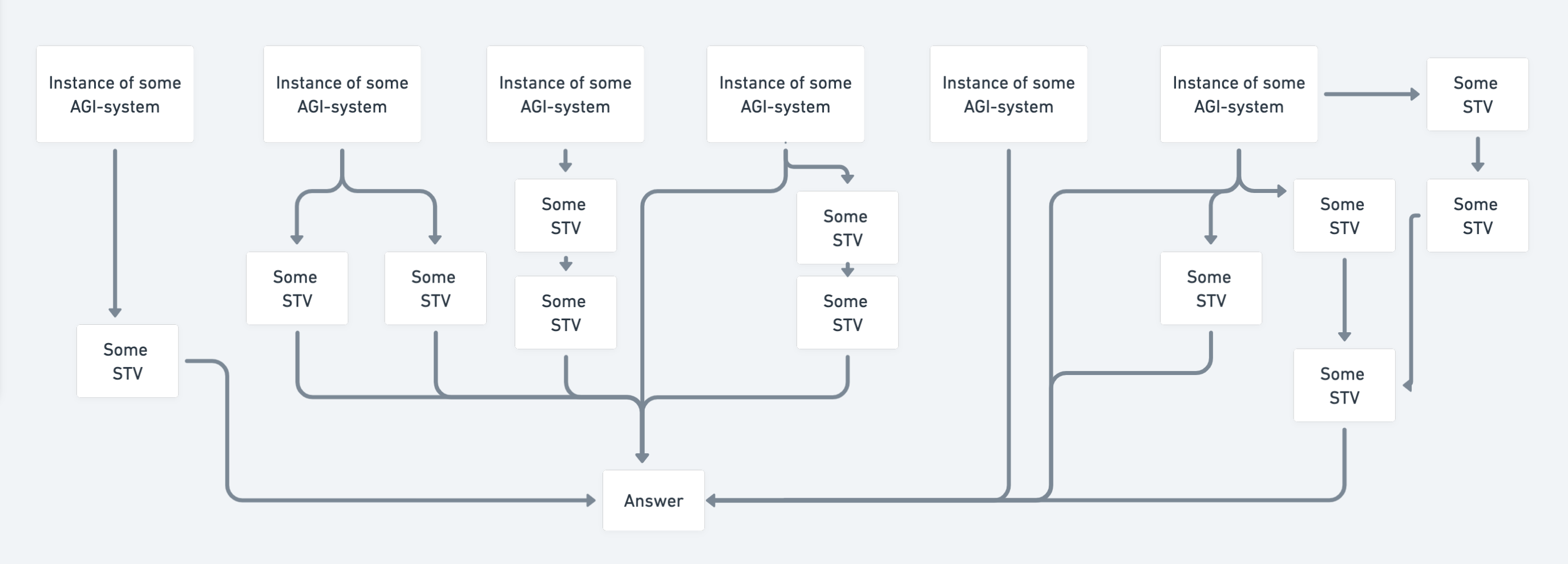 Me: Sure, that’s a challenge. And how challenging that part is will vary from STV to STV. The “scoring” of some solution is itself a task that other STVs could be specialized to work on. In many cases we may get far even if they don’t do a perfect job to begin with.
