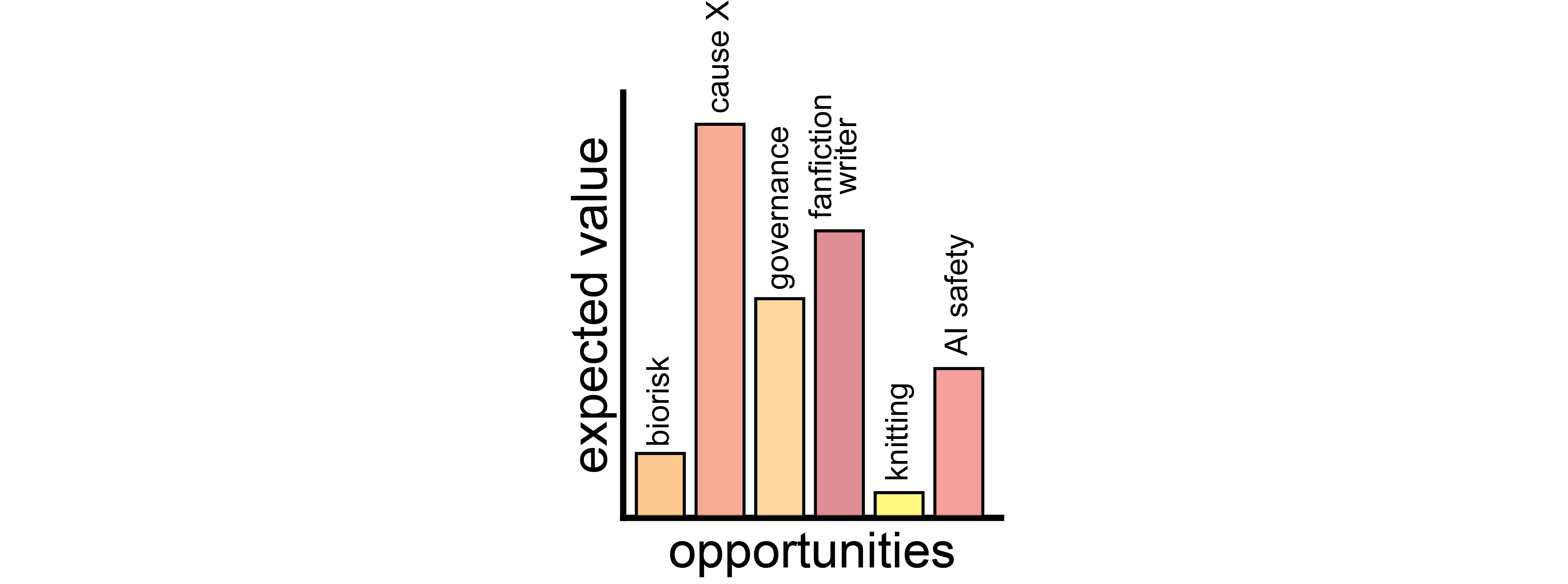 Since “cause X research” has the highest expected impact, you decide to pick that and drop the rest. In equations, you have opportunities and you decide to pick the one that has the highest expected value: