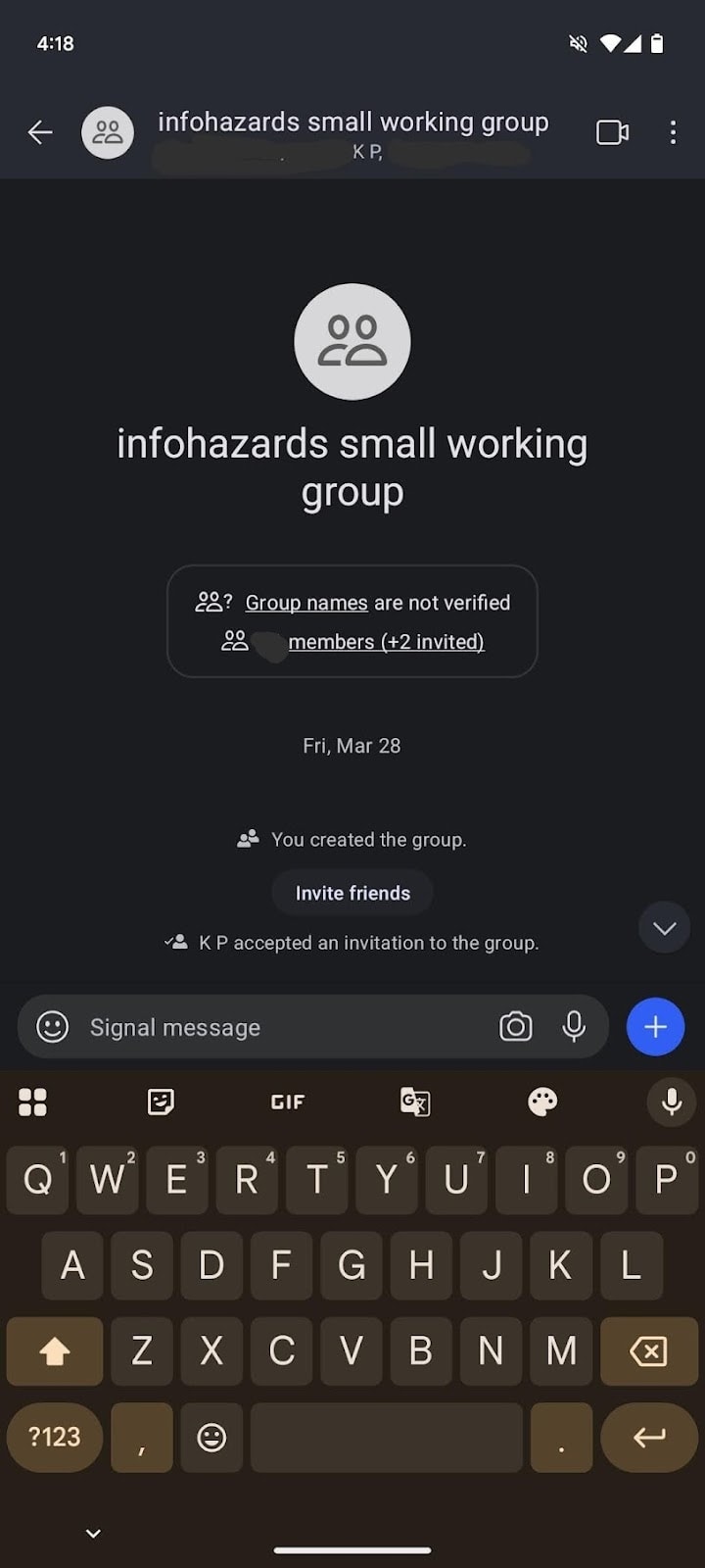 My “infohazards small working group” Signal Chat may have encountered minor leaks