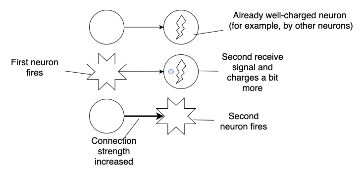 There is one theory: Neurons that fire together, wire together. Then you coactivate two neurons—connection strength increases. That’s called Hebb’s rule. And with increasing strength, the probability that the second neuron will activate after activating first growing too.