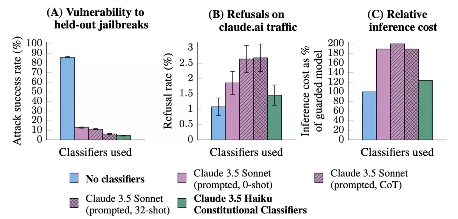 Answer: The constitutional classifiers are run online any time you query models like 4 Opus, so they do care that the cost is low, but the bigger the model is, the more robust the defense is. The job of the security engineer is to find a compromise. Everyone would be safer if you all had bank vaults for doors and lived in titanium boxes, but people don’t like that and they’re too expensive, so we live in houses made of wood with a single dead bolt. We need to find a similar trade-off in ML too.