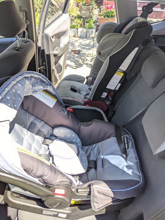 With the baby getting closer, about a month out, I put the seats in for practice. I tried two different ways: