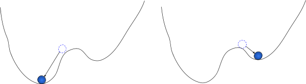 We see the system change from one state to another, and we want to know what caused the switch. So, we look for kicks which are large enough to overcome the hump, and ignore smaller noise.