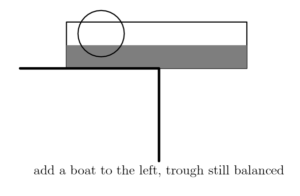 You put a boat in the trough at the end over the table. The trough remains balanced.