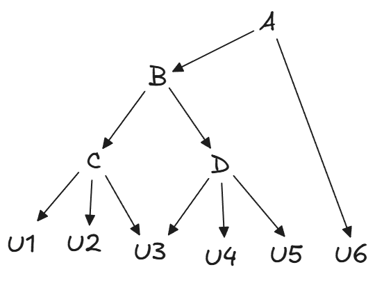 Example: Suppose that we have , , , , , . The resultant hierarchy would be: