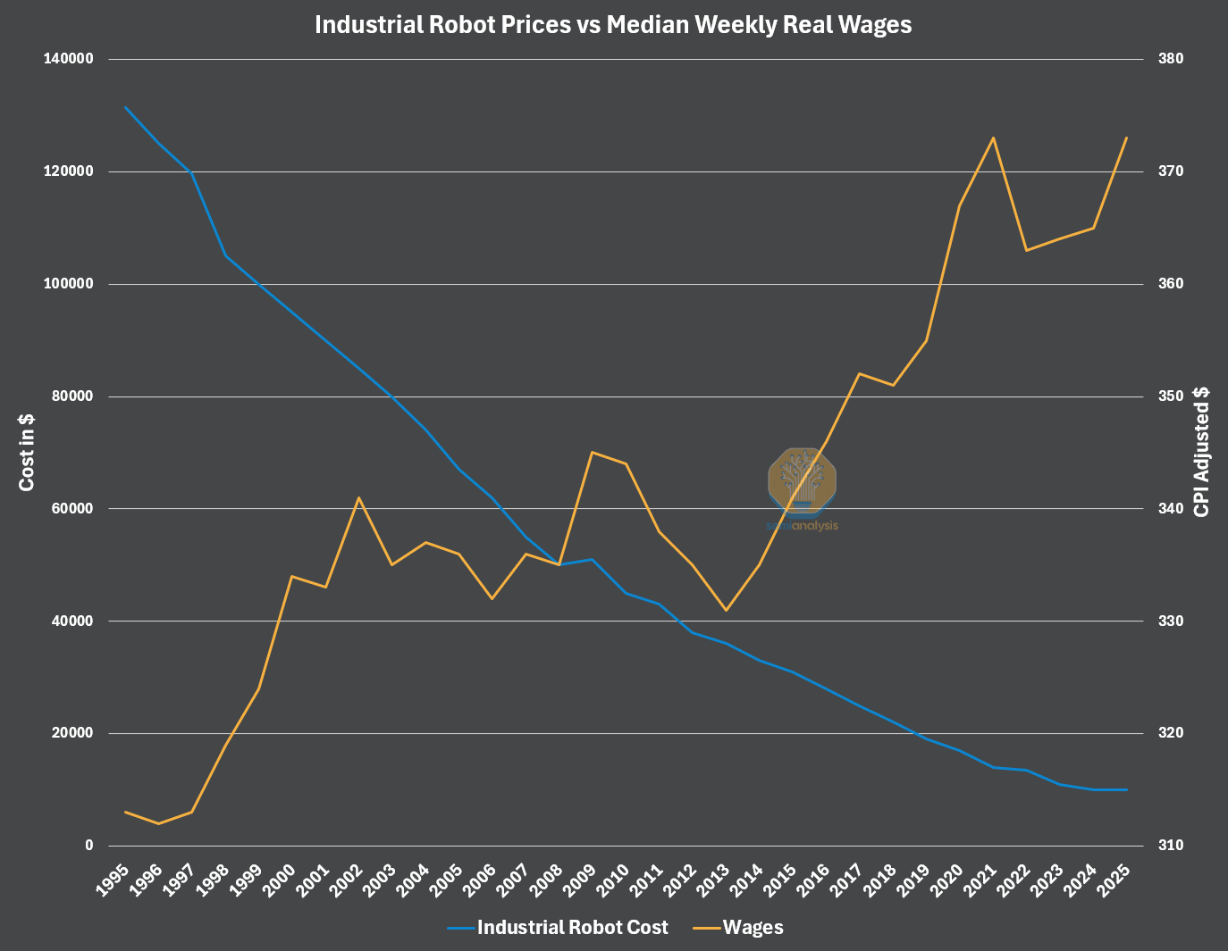 [Note: I have since updated that the gap in robots will be more like 4-10x]