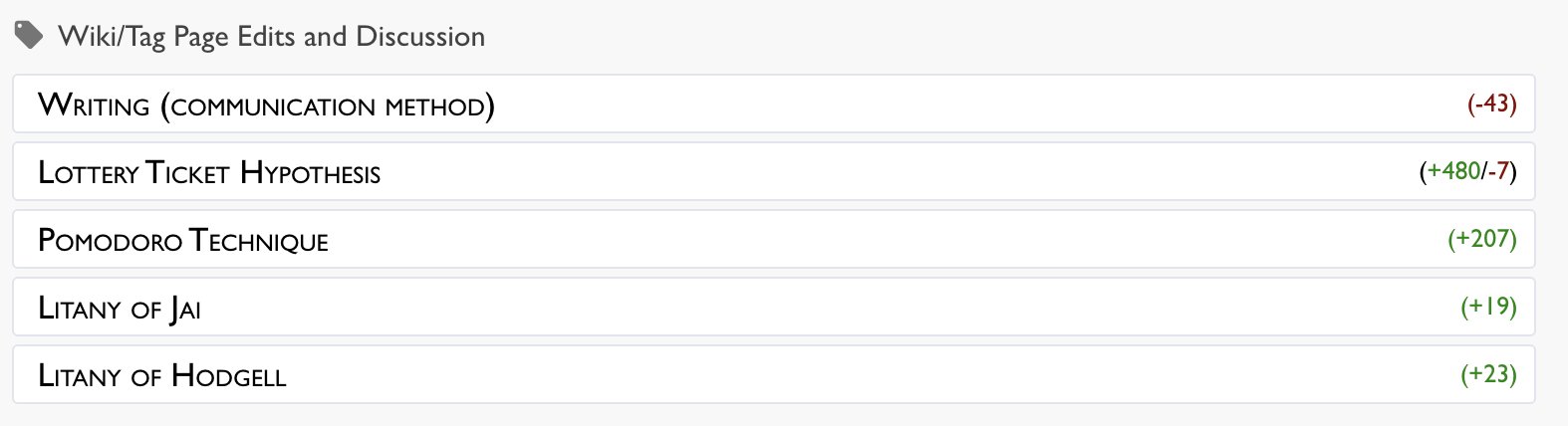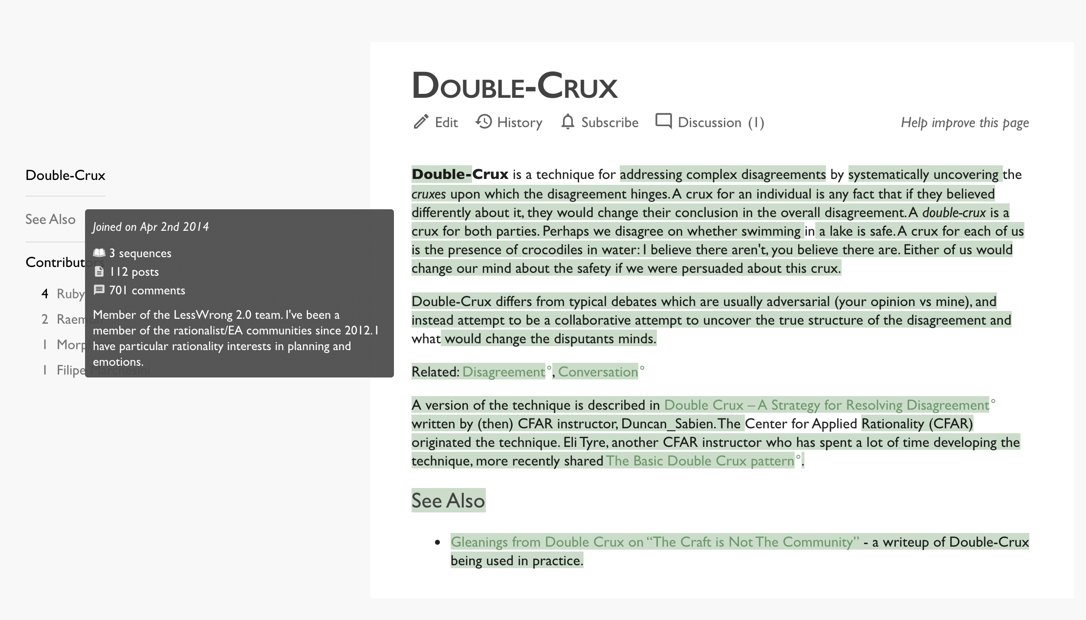 LessWrong has an associated wiki, tightly integrated with the tagging system. Today, we have just shipped a set of new features to make the LessWrong wiki better: