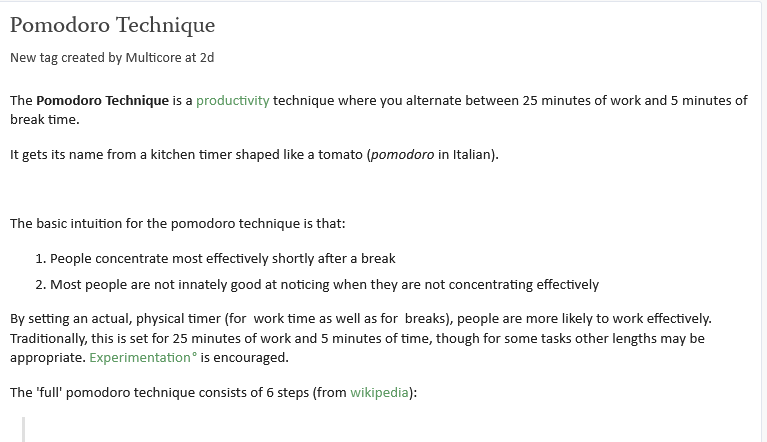 btw, seems there’s a bug where it says the time of the edit. it says “New tag created by Multicore at” as if it’s going to say a date, but then says “2d” as if it were to say “New tag created by Multicore 2d ago”