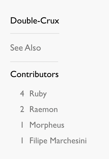 I am particularly excited about this one. Just below the ToC on tag pages you can see a list of all contributors to a given tag/wiki page: