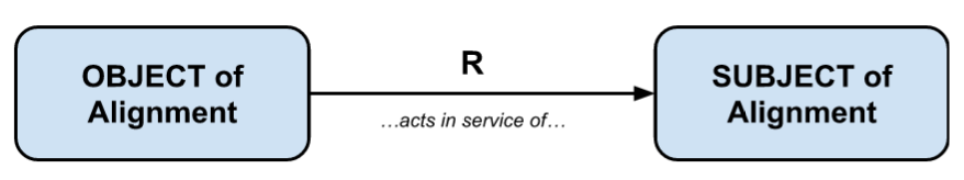 Figure 2: The “alignment equation”, with the object of alignment on one side and the subject of alignment on the other.