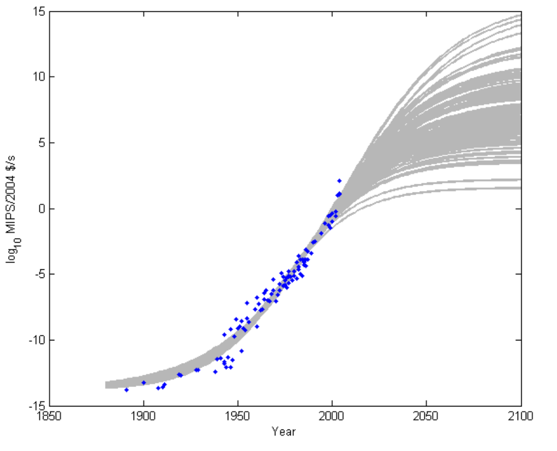 It’s well known in FHI and similar circles, that it’s impossible to distinguish an exponential (growth going up wildly) from a sigmoid/​logistic curve (exponential growth until a turning point—an S shape) - until well after the turning point.