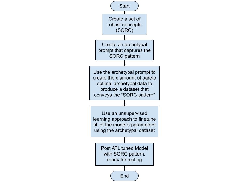 By capturing our values, ones that are mostly agreed upon and currently grounded as robust concepts[3] encoded in an archetypal prompt[4][5], carefully distributed in an archetypal dataset and mimic the pattern of Set of Robust Concepts (SORC) we can take a significant stride towards alignment. ‘Robust concepts’ refer to the concepts that have allowed humans to thrive as a species. Selecting these ‘robust concepts’ based on their alignment with disciplines that enable human flourishing.’ How ATL is trying to tackle this challenge minimizing human bias close to zero is shown in the diagram below:
